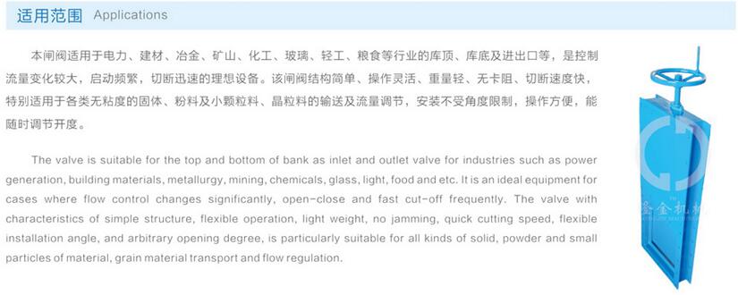 本閘(zha)閥适用(yong)于電力(li)、建材、冶(ye)金、礦山(shan)、化工、玻(bo)璃、輕工(gong)、糧食等(deng)🙉行業的(de)庫頂、庫(ku)底及進(jin)出口等(deng),是控制(zhi)流員變(bian)化較大(da),啓動頻(pin)繁👨🏻‍🏭,切斷(duan)迅速的(de)理想設(she)備